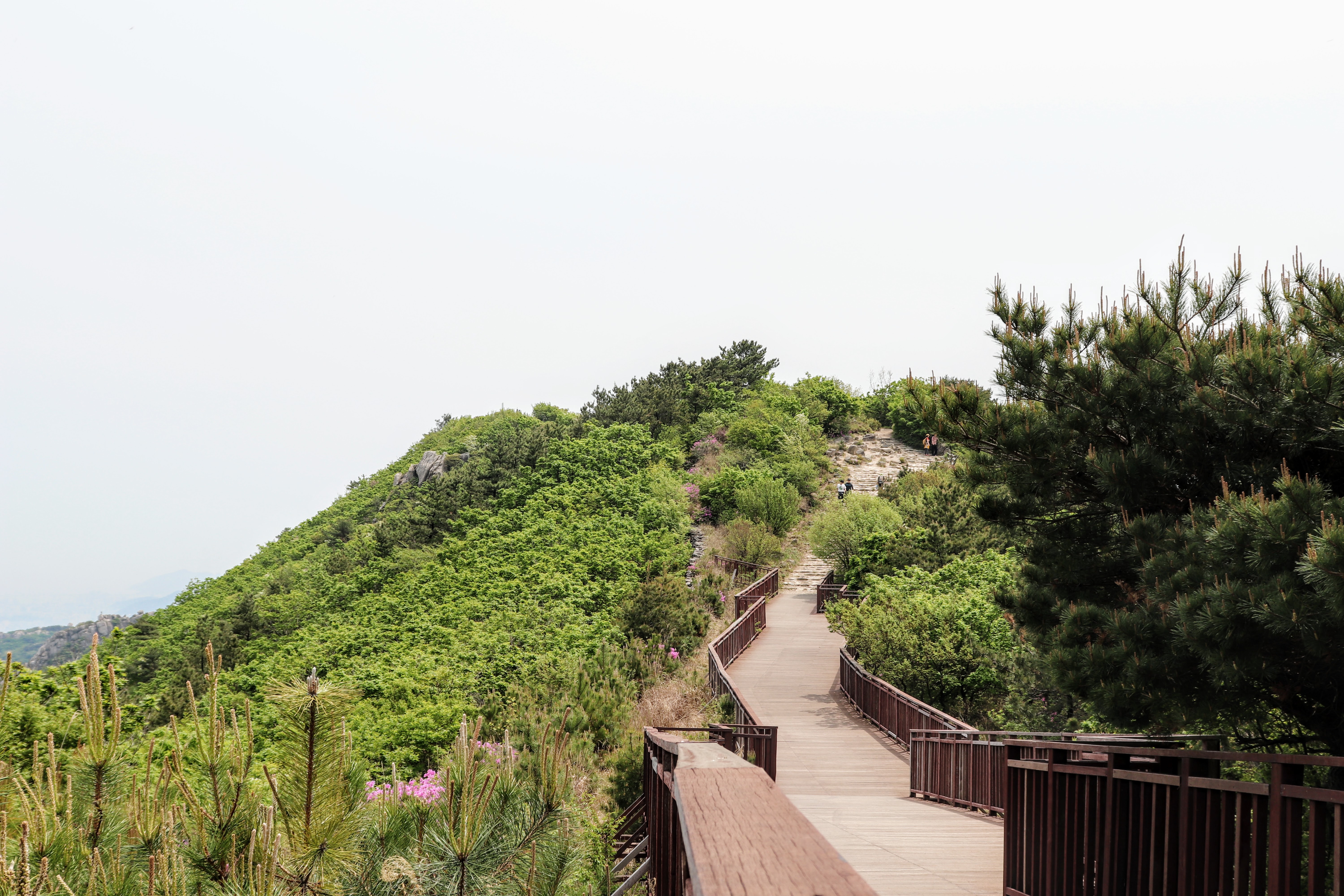 삼거리서 숲길을 따라 산으로 이어지다 우측 목책 계단으로 가파르게 오르면 거대한 화강암 돌덩어리가 눈앞에 나타나고 잘 만들어진 나선형 데크를 따라 정상까지 오르게 된다.