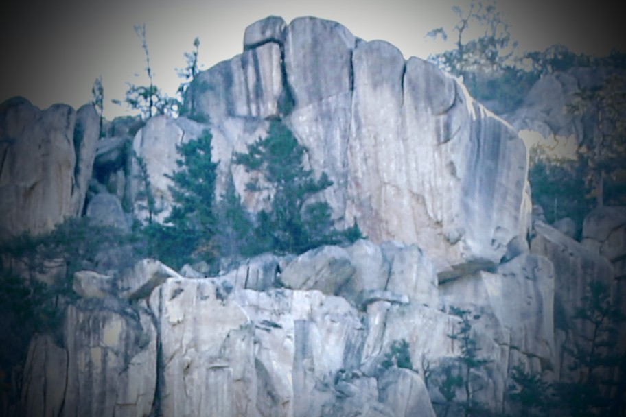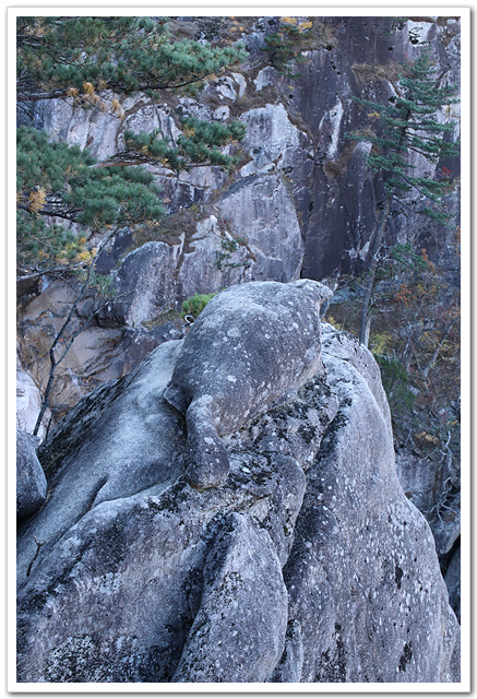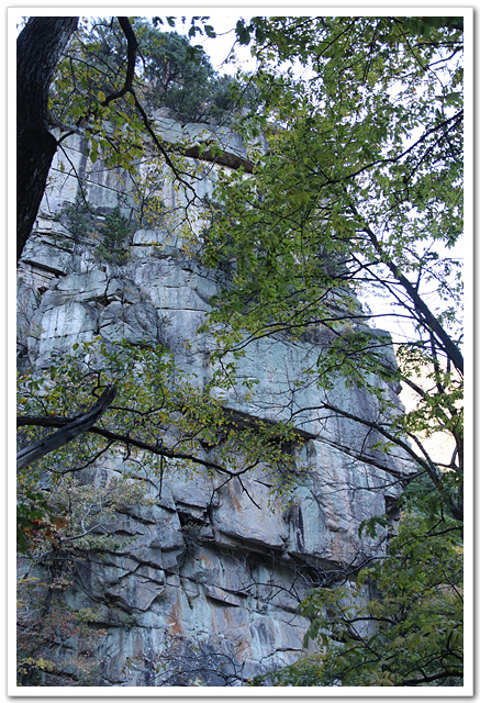 계단에서 보는 폭포 반대편 암봉인데 발바닥 바위라 불렸습니다. 확대해보니 발바닥이라 칭한 이유를 알겠더군요