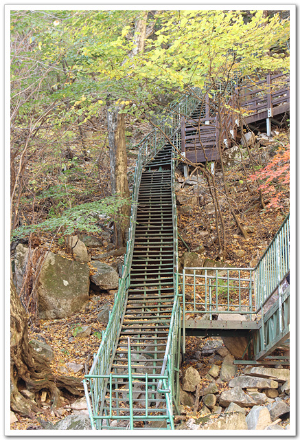 용추폭포의 상단부는 계단을 통해 올라갑니다. 폭포 중단과 상단은 갈지(之) 자로 방향을 틀어가며 내려오고 있습니다.
