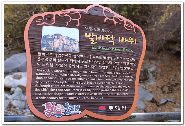 하단 폭포 아래는 폭 30미터가량의 크고 깊은 소(沼)를 이루고, 오른쪽 하단 아래는 정조년 12월 당시 삼척부사였던 유한준의 글씨로 龍秋라 음각이 돼있습니다. 현재라면 자연보호 훼손으로 콩밥 좀 드실 텐데 말이죠