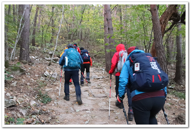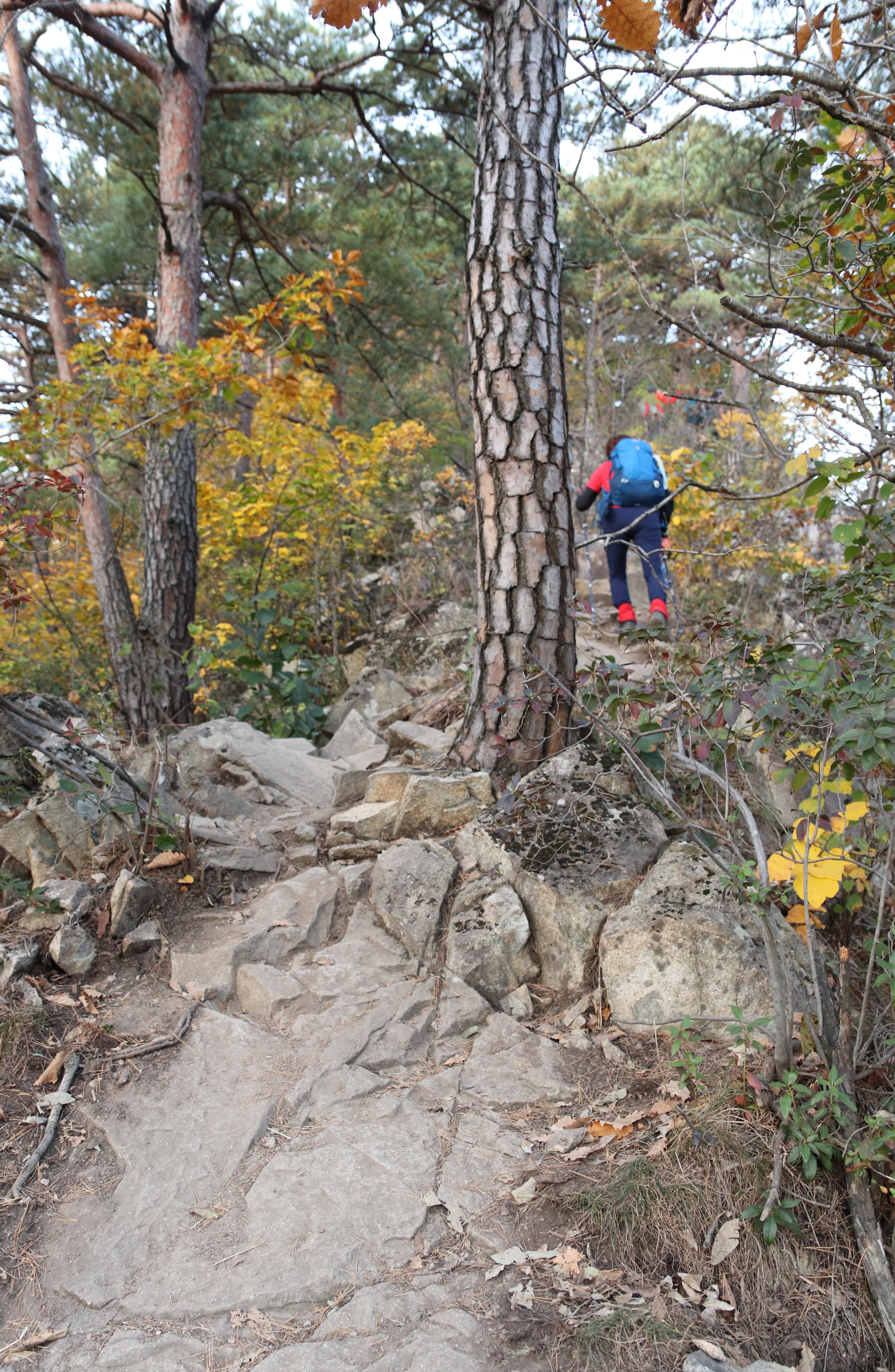 첫 오름부터 가파르게 시작되며 탐방로는 돌계단으로 정비한 흔적이 많아 보였습니다.