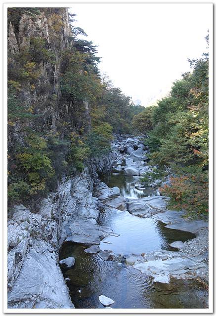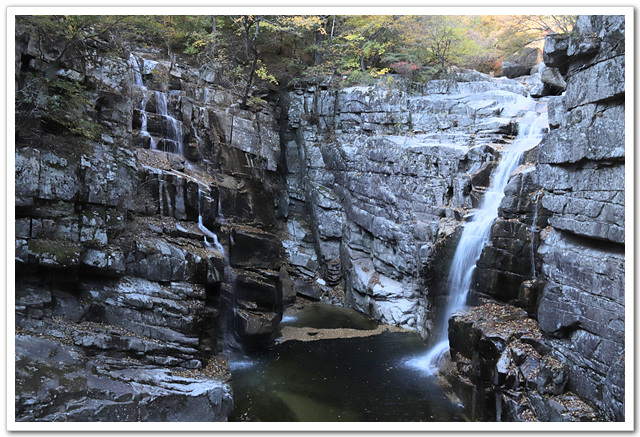 두 물줄기가 쌍폭포를 이루고 합수되어 소(沼)를 이루며 이는 무릉계곡을 유유히 흐르며 동해로 흘러 들어갑니다. 수량이 적어 못내 아쉽습니다.