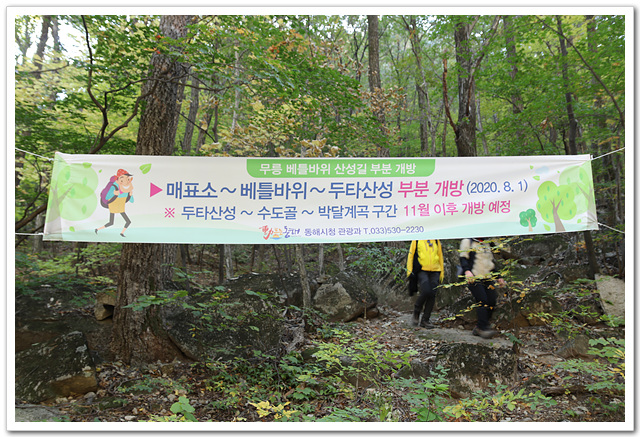 두타산성 ~ 수도골 ~ 박달계곡은 아직 미 개방지이고 11월 중 개방된다고 안내합니다.