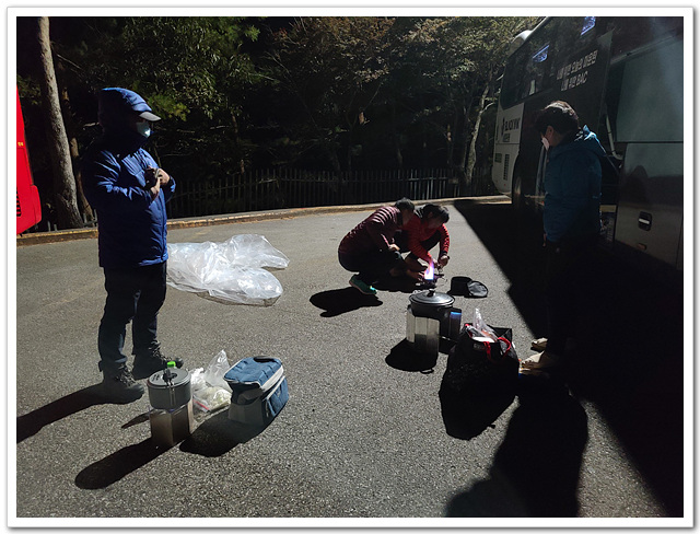새벽 5시 30분 날씨는 한겨울로 착각할 정도로 세찬 바람과 함께 매우 춥습니다. 일행과 따뜻한 어묵탕으로 간단히 아침을 해결하고 떠납니다
