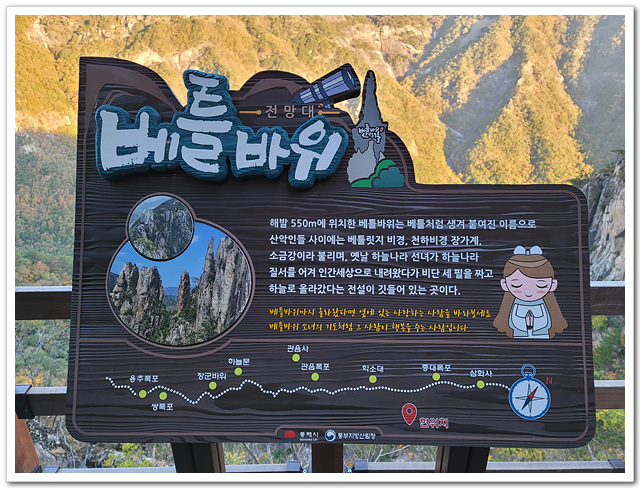 전망대에서 바라본 베틀바위입니다. 장가계에 가본 적이 없어 비교할 순 없지만 안내도 그대로 소개하자면,