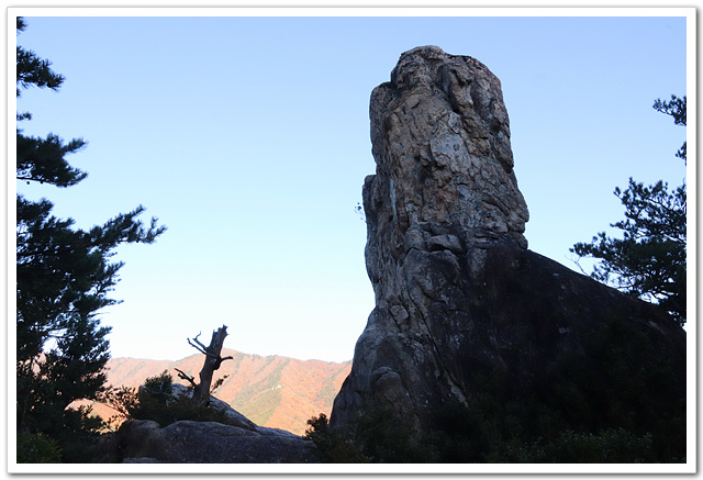 미륵바위입니다. 보는 각 도와 빛에 따라 선비·부엉이·미륵 등 여러 형상으로 달라 보이는 미륵바위라고 합니다