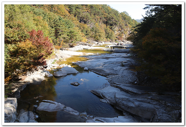 용추폭에서 내려오는 백운동계곡과 만납니다. 용추폭포까지 1km 이상 올라갔다 다시 내려올 겁니다.